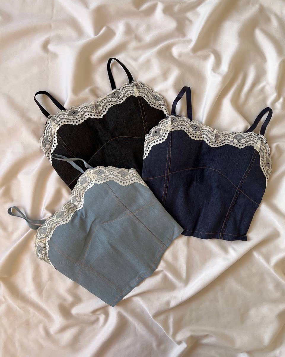 کراپ جین دانتل دار🩵
